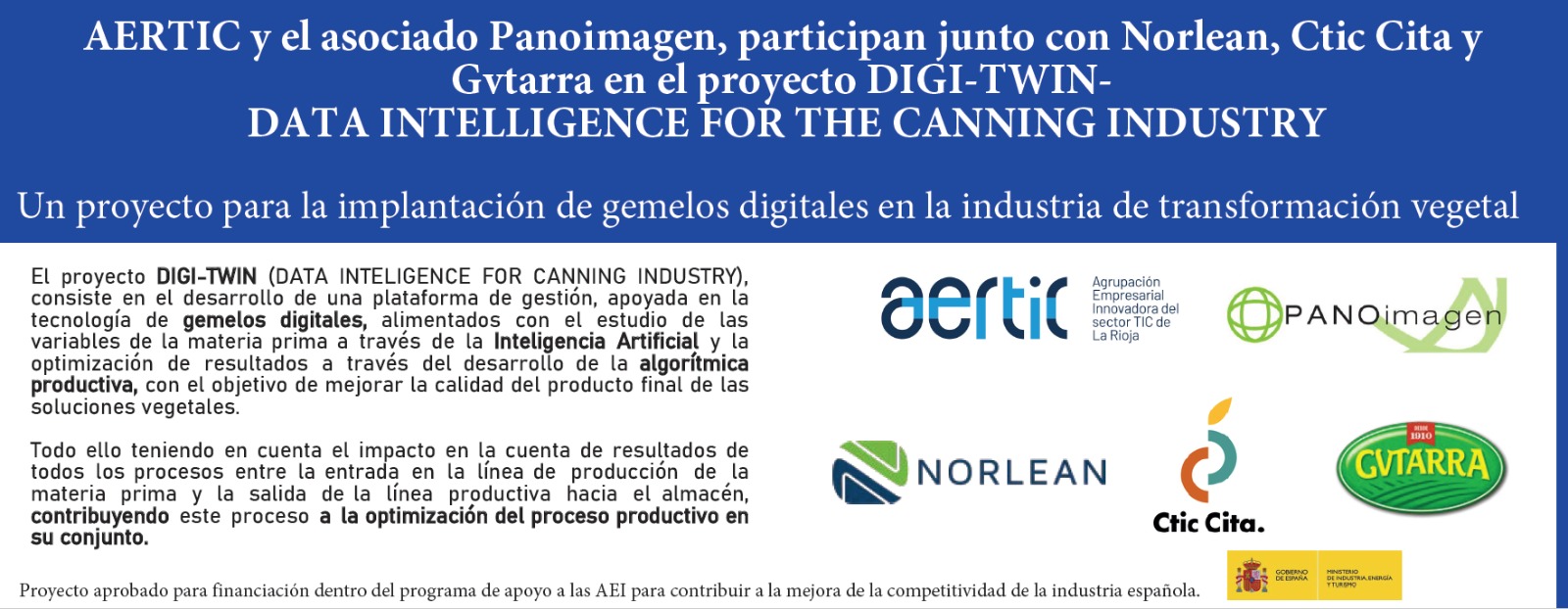 LaRioja Digital / Noticias / AERTIC participa en el Proyecto “Digi-Twin: Data Intelligence for the Canning Industry”